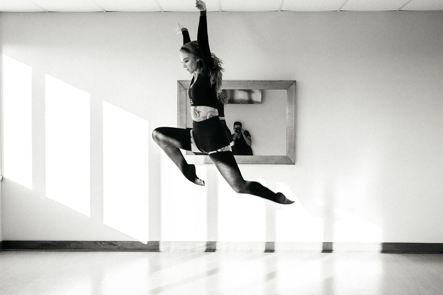 We pushed the geriatric workout equipment to the far corner — every foam roller, dirty mat and styrofoam-covered dumbbell — and asked Mary if she would dance while we photographed her.